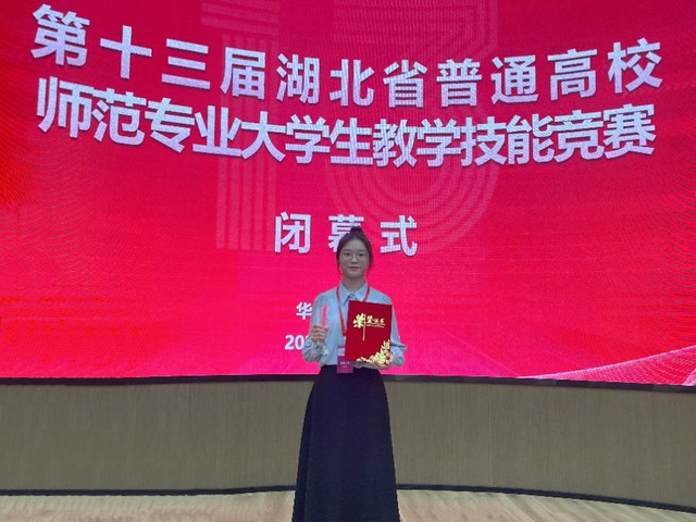 (通讯员 刘芳怡)119日,第十三届湖北省普通高校师范专业大学生教学技能竞赛在华中师范大学落下帷幕,我院21级教育学1班刘芳怡荣获初中数学组一等奖。
