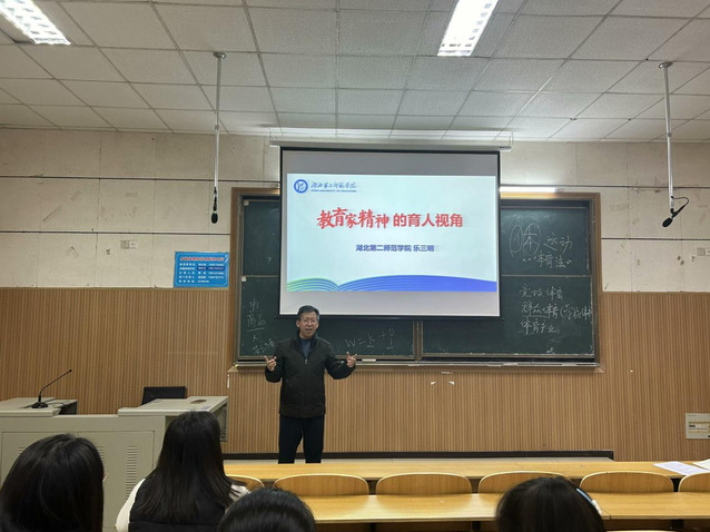 随后,乐三明书记讲解了“教育家精神”的具体内容,并引出了“教育家精神的育人视角”提醒大家作为学生干部,作为一名师范生,大家要有“以天下为己任”的弘道追求——弘扬教育家精神,争做“四有好老师”。