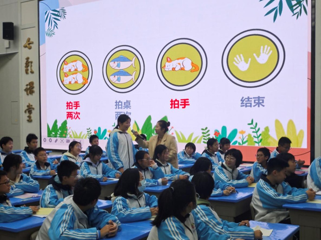 (图为光谷实验中学倪荣华老师给我校心理学专业学生们展示的心理课堂活动场景)
