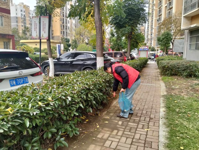 志愿者们身体力行,社区中出现许多身着红色马甲的身影。花坛边上,他们俯下身,细心找寻隐匿其中的垃圾,让其回归到垃圾桶当中;人行小道上,他们互相合作,快速高效地清理路面上的纸屑、烟头等杂物,为居民创造更为洁净的通行道路。志愿者们认真负责,为美化社区环境贡献自己的一份力量。