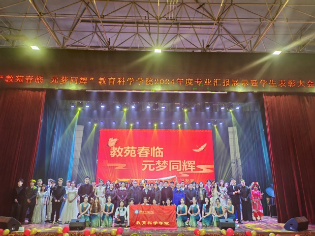 (通讯员 张亚琪)为喜迎元旦佳节,展现学院的育人成果和师生积极向上的精神风貌,2024年12月16日18时,教育科学学院(以下简称“教科院”)2024年度专业汇报展示暨学生表彰大会在学校大礼堂隆重举行,全院师生欢聚一堂,共同迎接新年的到来。此次晚会以“教苑春临,元梦同辉”为主题,为师生们呈现了一场精彩纷呈、高潮迭起的视听盛宴。