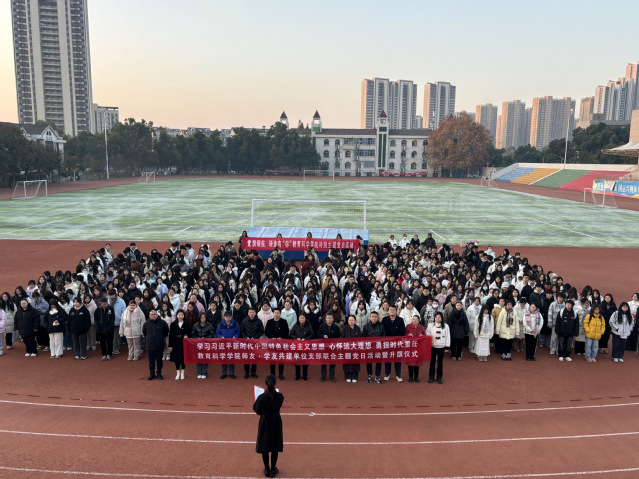 (通讯员 刘晨)12月16日上午,教育科学学院(以下简称“教科院”)在学校田径场隆重举行“师友·学友”共建单位支部联合主题党日暨升旗主题教育活动。本次活动以“学习习近平新时代中国特色社会主义思想 心怀远大理想 勇担时代重任”为主题。学校党委委员、副校长张红梅、“师友·学友”共建单位领导、学院领导、辅导员、学生党员、积极分子、团校学员、2024级新生参加活动。