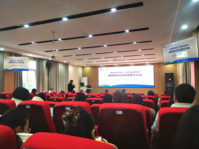 为了解当前国际高等教育发展的趋势与国外课堂教学的先进理念,让学院全体教师共享赴海外访学教师的学习收获、共同提高,12月12日下午,教育科学学院在S6201举办一流专业建设暨教师海外访学成果分享会。校党委常委、副校长张红梅,国际交流与合作处处长沈友清,教科院班子成员及全体教职工参加了会议。会议由学院院长张炜主持。