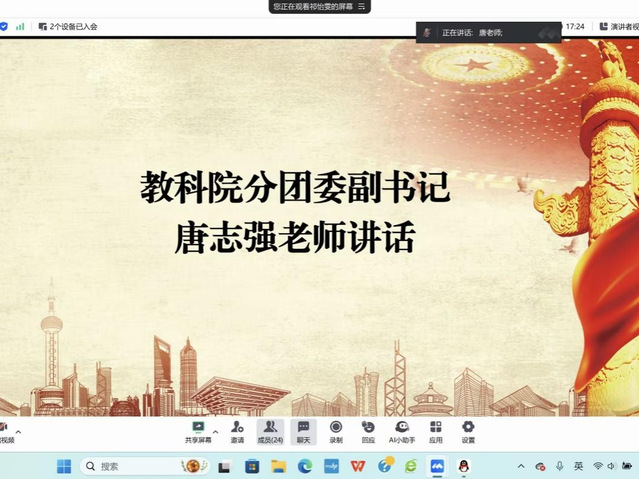 (通讯员 张亚琪)为进一步加强基层团组织建设,提升团支部活力,12月20日19时30分,教育科学学院(以下简称“教科院”)于腾讯会议召开2024年团支部“对标定级”复核会议。教科院分团委副书记唐志强、分团委组织部全体成员以及21级、22级、23级各班团支书参加会议。