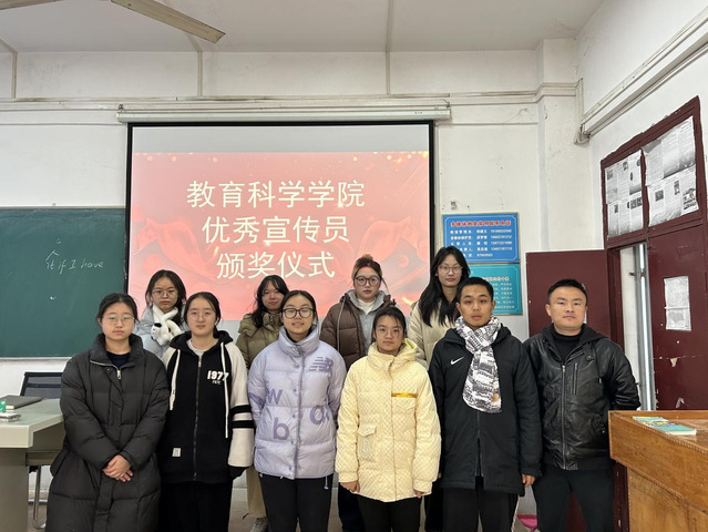 (通讯员 饶诗锐)为总结工作、表彰先进,扎实推进学院宣传工作,12月20日中午12时,教育科学学院(以下简称“教科院”)于5307开展“优秀宣传员”表彰大会。教科院分团委副书记唐志强及全体宣传成员参与本次活动,24级学前教育2班陈玲担任本次活动主持人。