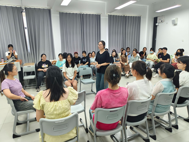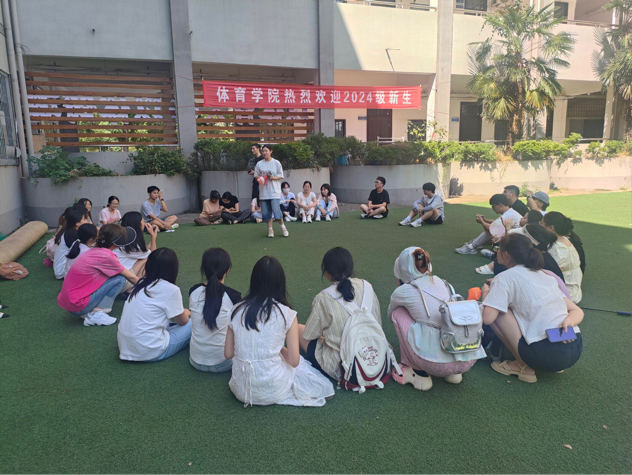 (图为22级教育学1班成员围坐在一起体验表演活动)