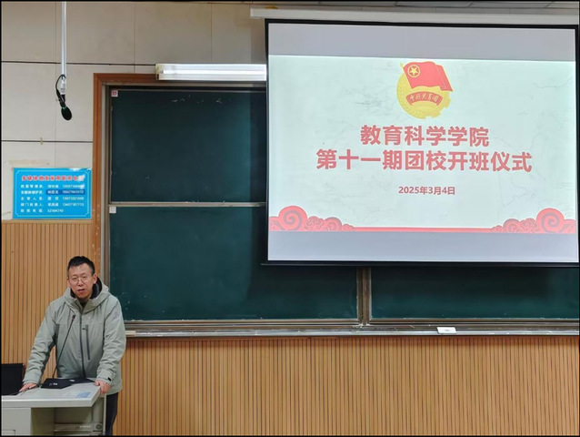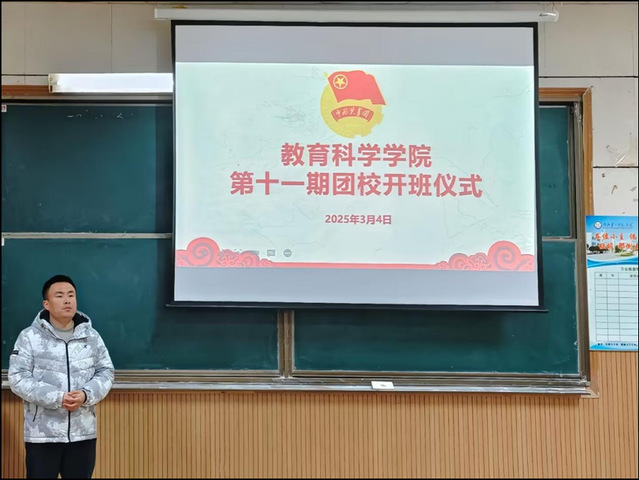 (通讯员 马骋) 为加强青年学生理论学习,坚定青年学生理想信念,教育引领入团积极分子学习共青团的历史,认识入团初心,3月4日12时,教育科学学院(以下简称“教科院”)于阶梯教室4举行第十一期团校开班仪式。教科院分党委书记乐三明、分团委副书记唐志强,以及第十一期全体团校成员参加,本次活动由24级小学教育2班何凯昕主持。