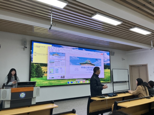 讲座伊始,主持人吴贤华老师详细介绍了魏心妮副研究员的学术背景与成就。魏心妮博士致力于积极心理学领域研究,与清华大学喻丰教授等学者合作发表了多篇高质量论文,其研究成果《心理丰富对亲环境行为的影响》于2023年发表于国内顶级期刊《心理学报》。此外,她还参与多项国家级课题,在积极情绪干预、心理韧性培养等领域积累了丰富经验。吴贤华老师对魏心妮博士的到来表示热烈欢迎,并鼓励同学们把握机会,深入思考心理学理论与实践的融合。