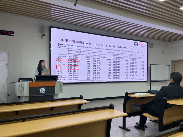 互动环节中,同学们根据自己的疑惑踊跃提问,魏心妮博士逐一解答,并分享了研究中的真实案例。最后,吴贤华老师总结道:“魏博士的讲座既有理论高度,又具实践温度,为同学们打开了积极心理学研究的新视野。”