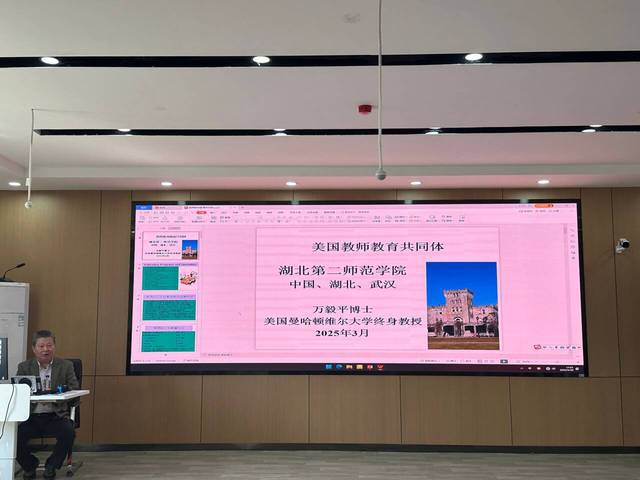 (通讯员 陈梦)为拓宽师生国际视野,深化对教育改革的理解,2025年3月20日下午,湖北第二师范学院教育科学学院特邀美国曼哈顿维尔大学终身教授万毅平博士,在S6201教室作题为“美国教师教育共同体”的专题讲座。教育科学学院全体师生参加了本次活动,讲座由学院副院长李贤智主持。