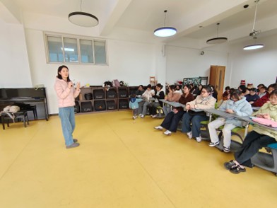 活动第二阶段,陈纳老师主持召开专题家长会。通过多媒体展示活动设计理念,系统阐释游戏化学习生活化学习等教学模块的理念,并公布本学期家园共育计划。家长们纷纷表示,这种理论实践相结合、学生家长双受益的活动形式,让他们直观感受到学院的教学实力。