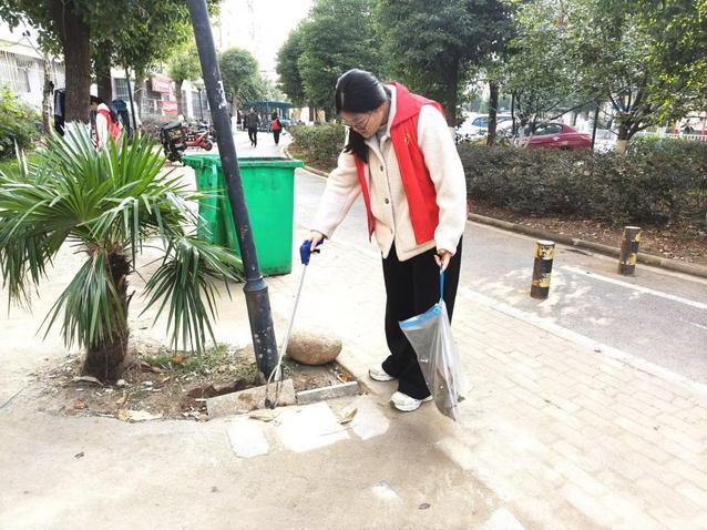 抵达社区后,志愿者们迅速开展清扫工作。他们手持镊子,沿着道路俯身弯腰,认真清理每一处垃圾,不放过一片落叶、一个烟头和纸屑,全身心为道路“美颜”,以实际行动助力社区环境焕新。