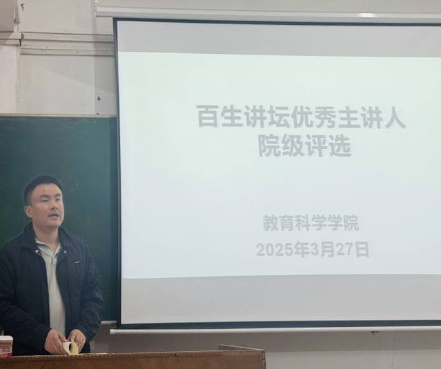 (通讯员 刘畅)为深入学习贯彻习近平总书记关于青年工作的重要思想和考察湖北重要讲话精神,持续深化“悦学习·跃青春”思政工作品牌,坚持用习近平新时代中国特色社会主义思想武装头脑、铸魂育人,3月27日12时,教育科学学院(以下简称“教科院”)于5206举办2025年“悦学习·跃青春—百生讲坛”优秀主讲人评选活动,教科院分团委副书记唐志强和分团委学生干部、各班学生代表参会,分团委组织部部长秦雨馨担任主持人。