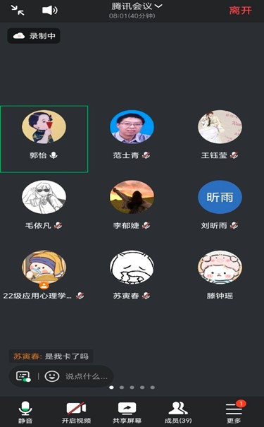 心理学教研室的老师对此次线上分享会高度重视,本专业学生也对此次分享会兴趣浓厚。分享会上苏寅春详细讲解了如何写出一篇优秀的论文及论文创新点的重要性,他说:“好的研究主题是成功的一半。”并通过几个生动有趣的例子分享了自己在本科学习阶段的心得和方法。其中苏寅春同学特别指出的是学生本身不仅要具有创新精神、求知精神,在学习阶段还要多与专业相关的老师积极沟通交流,不断尝试以跨学科视角探讨感兴趣的问题。