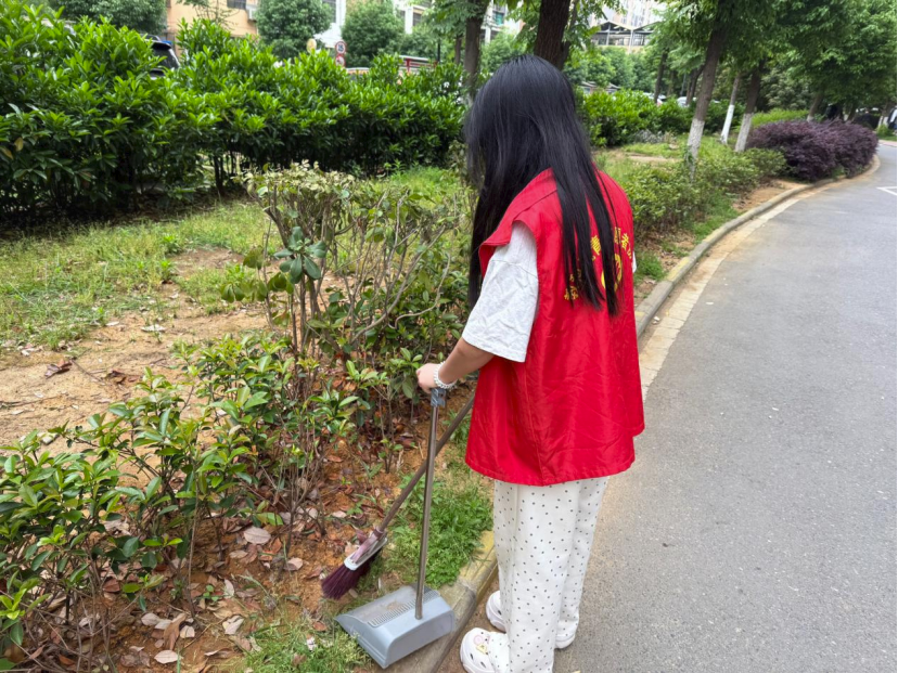 在社区道路两旁,志愿者们仔细清扫路面零星垃圾,认真清理卫生死角;在绿化带区域,他们小心拨开草丛,捡拾隐藏其中的塑料袋、废纸、烟头等废弃物;在社区公园内,志愿者有序清扫台阶,并整理堆积杂物。尽管天气逐渐炎热,但大家始终干劲十足,用实际行动来维持社区环境的整洁。