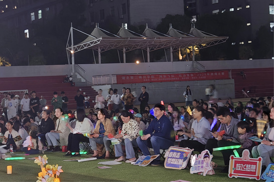 本网讯(通讯员 赵欣)4月17日晚,“一站式”学生社区“草坪上的思政课,青春里的交响诗”毕业音乐分享会在综合田径场举行,这是学校连续第三年举行草坪上的思政课。副校长吕辉出席。