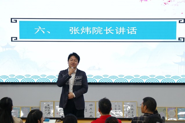 第四项议程在热烈的氛围中继续进行。教科院院长张炜老师登台致辞。张院长首先向全体教育学师生致以诚挚谢意,对大家辛勤的活动筹备表达敬意。同时,他充分肯定了“三笔字”和“教育家精神宣讲”等专业修炼活动在锤炼教师职业基本功方面的重要意义,高度认可这一活动对师生专业素养提升的积极作用,并殷切期望本活动能够持续开展、不断创新,在未来绽放出更加绚丽的光彩。