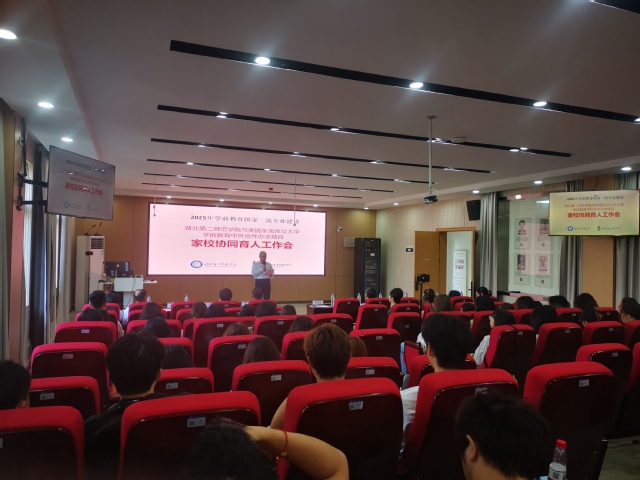 (通讯员 程婷)426日上午,教育科学学院(以下简称“教科院”)于S6201召开“学前教育国家一流专业建设——中外合作办学项目家校协同育人工作会”。美国东北州立大学代表、国际交流合作处、教科院相关负责人及学前教育专业教师、23级学前教育中美班学生家长与全体学生参与会议。教科院副院长李贤智主持会议。