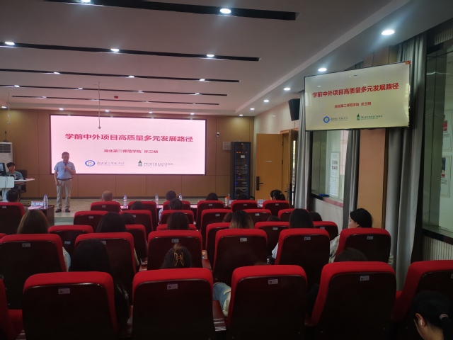 随后,学校国际交流合作处沈友青处长对中美教育合作交流的形势和趋势进行了介绍,鼓励同学们提升专业能力、开阔国际视野与多元发展。教科院党委书记乐三明以《学前中外项目高质量多元发展路径》为题分别对学院发展、学前专业一流专业建设、学前中美班教学管理与合作模式等相关情况进行了介绍。据了解,学前教育中美合作项目今年第一届毕业生58人,有17人考研上岸,国内外考研升学率达到了29.31%,录取学校包括国内985211高校及世界QS排名前100位的美国约翰霍普金斯大学、英国格拉斯哥大学、利兹大学以及香港教育大学、香港浸会大学、香港理工大学等。另外,2+2美国就读学生选择了考研或者留美工作,部分毕业生被新加坡政府公办幼儿园录用。