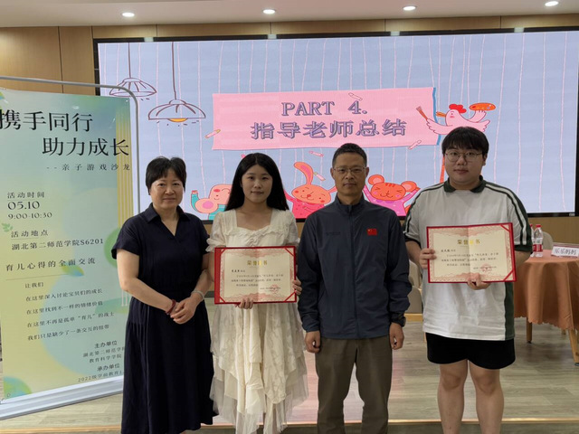 活动最后,吴贤华副院长总结发言,指出孩子是家长的希望,也是国家的希望,育儿活动需要大家共同完成。至此,主持人总结活动内容,向参与人员致谢,为陈文聪学长、李奥梦学姐颁发证书,全体人员合影留念,为此次充满温情的育儿沙龙活动画上圆满句号。