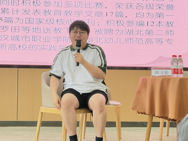 (图为陈文聪学长根据自己带班经验向家长讲解幼儿在集体生活中的状态与变化)
