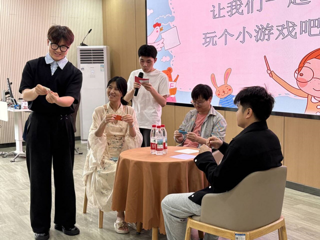 活动伊始,主持人热情开场,以折纸游戏迅速点燃现场氛围。家长在闭眼、睁眼的折纸过程中,了解到育儿过程中需要与同龄孩子家长、专业人士相互沟通,交流经验,共同助力孩子的发展。
