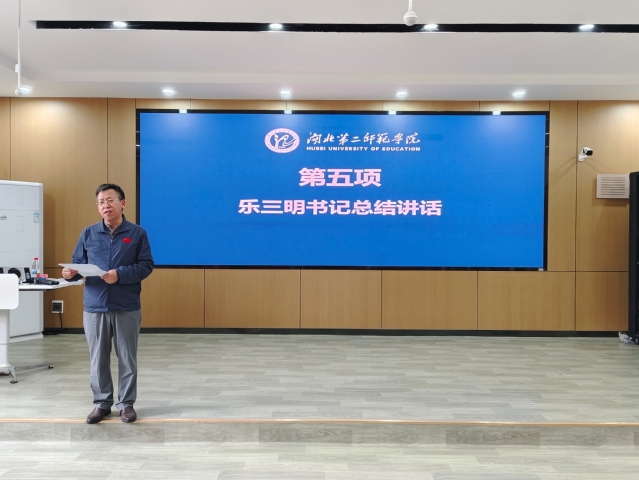 最后,乐三明书记作总结讲话,他指出,文明素养是学生成长成才的重要基石,是学院发展的内在动力。通过本次文明素养提升行动,希望全体师生能够深刻认识到文明素养的重要性,将文明行为融入到日常学习与生活中,内化于心,外化于行。同时,乐三明书记给大家提出了三点希望:一是要做“知行合一”的践行者,从关闭无人教室的灯、扶起倒地的共享单车、捡起地上的塑料袋做起,让文明成为条件反射;二是要做“美美与共”的传播者,发挥武汉“大学之城”优势,将“地铁让座”的温暖、“方言课堂”的乡愁化作城市文明的星火;三是做“守正创新”的开拓者,用“Z世代”的智慧为传统文化赋能,让中华师道、非遗文创、校园樱花直播、创作更多网红歌曲《汉阳门花园》,一起为武汉代言,成为文明传播的新载体。