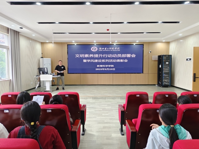 (通讯员 张亚琪)为提升学生文明素养,强化学生安全意识,形成优良的班风、学风、校风,创建文明和谐校园,5月23日12时,教育科学学院(以下简称“教科院”)于S6201召开文明素养提升行动动员部署会暨学风建设系列活动表彰会。分党委书记乐三明、全体辅导员及学生干部代表参加此次会议,会议由分团委副书记唐志强主持。