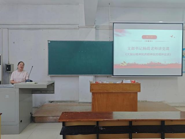 学生第二党支部书记杨霞讲授《大别山精神抗洪精神抗疫精神宣讲》专题党课。
