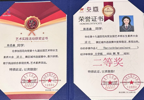 陈思淼 | 大学组 | 钢琴 | The truth that you leave | 二等奖 |