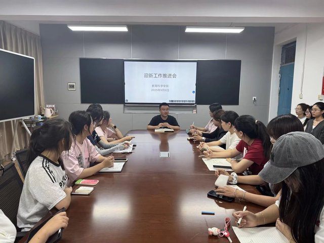 为扎实做好2025级新生迎新工作,保障迎新活动规范、高效推进,9月8日下午6点,教育科学学院(以下简称“教科院”)召开2025年迎新工作推进会。教科院分团委副书记唐志强,志愿者协会全体成员参加了本次会议。会议着重细化“一对一”精准迎新模式,旨在为2025级新生提供更加个性化、精准化的服务,确保迎新工作高效有序开展。