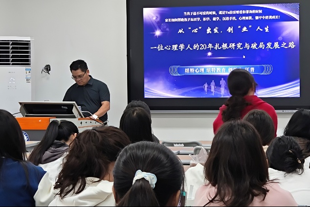 (通讯员 毛依凡)为拓展学生职业视野,搭建校企交流平台,我校教育科学学院应用心理学专业特邀纽特心理创始人江普先生,于2025年9月25日12:30至14:00在博雅楼318教室举办了一场别开生面的招聘宣传会。教育科学学院副院长吴贤华,应用心理学专业副教授范士青、郭怡和李松清教师,共同出席了本次活动,与应用心理学专业的同学们进行了深入交流。
