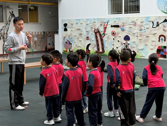 活动伊始,实习生谢程扬带来大班健康活动《丛林探险》展示。幼儿们在情景化体能训练中开心闯关,体验翻滚的乐趣。课后,混龄十四班班主任潘绪慧老师从实践角度对本次展示课进行点评,并对谢程扬同学在此次公开课中呈现的专业素养与成长进步给予高度认可。