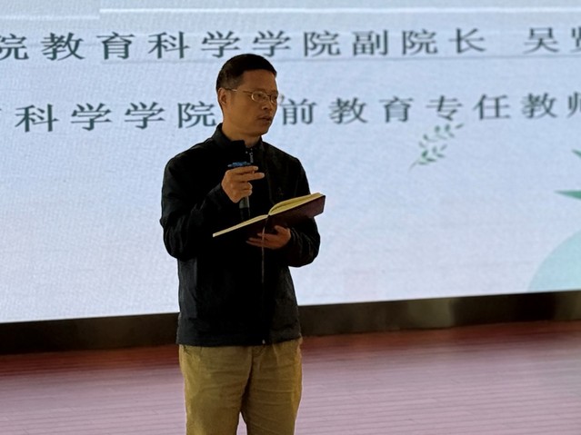 精彩的展示课后,进入专业点评环节。湖二师教科院副院长吴贤华对展示课进行点评,他从“乐、爱、带”三个方面对展示课给予高度评价。接着,湖二师教科院学前教育专业专任教师徐梦雪从活动完成度、教姿教态方面进行专业点评,对语言活动的导入、延伸环节提出优化建议。