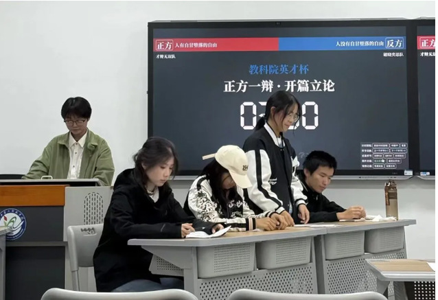 2025年10月30日15:00,教育科学学院学生会于博雅楼举行学校“英才杯”辩论赛,评委、选手及教科院辩论队全体成员共同参与本次活动。