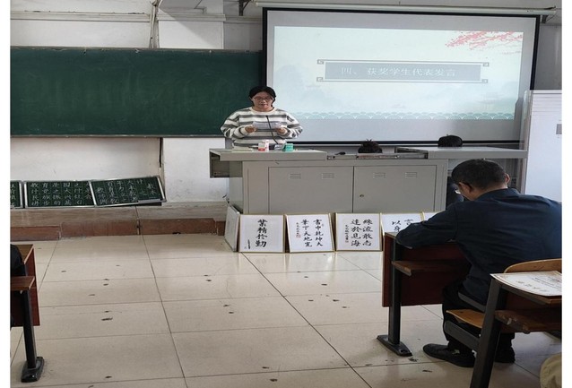 (上图为粉笔字一等奖获得者孙佳同学发言)