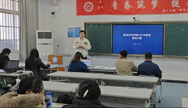 (通讯员 周萌 齐建峰)为强化生涯教育与就业指导,提升大学生职业规划意识与就业竞争力,10月19日,教育科学学院(以下简称“教科院”)于四号教学楼4107举办2025级第三届职业规划大赛院赛,教育科学学院各学科专业负责人,专业老师及辅导员老师受邀参与本次活动,教科院就业学生干事齐建峰担任主持人。赛事自启动以来,受到全院各年级学生的广泛关注和积极参与,线上赛报名人数超889人。经过班级内推选工作,最终47名优秀选手脱颖而出,晋级院级决赛。