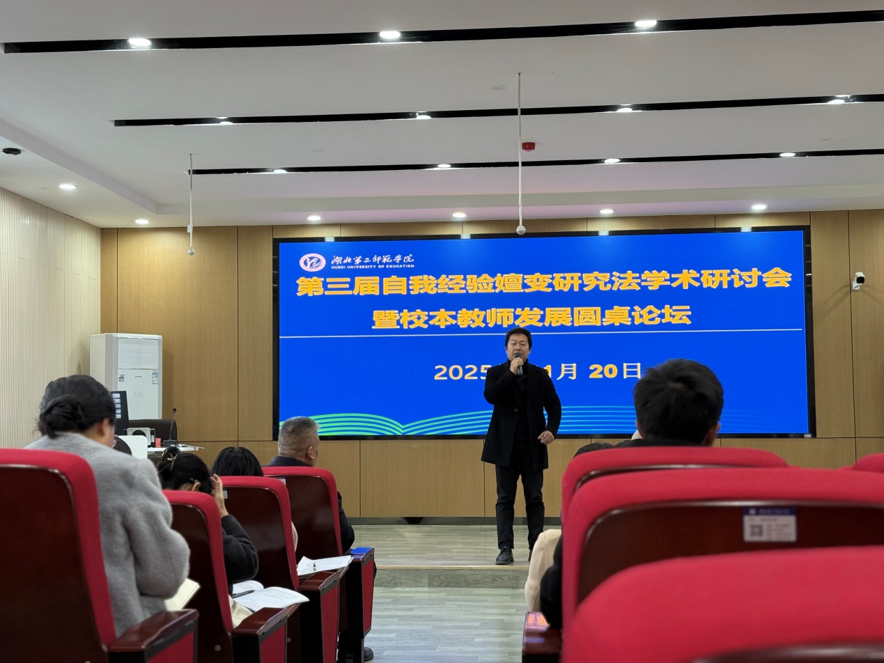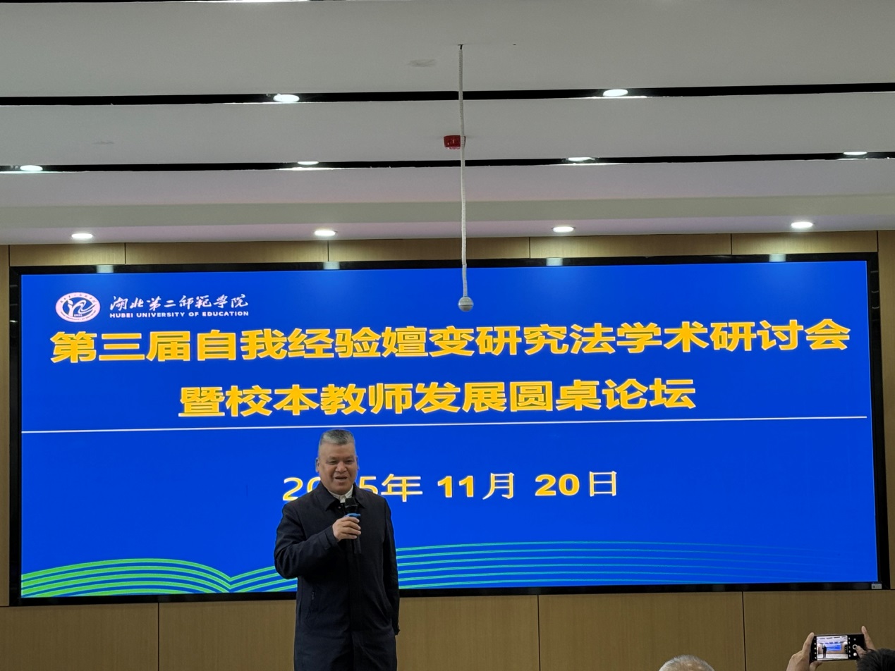 (通讯员 彭茁 王家璇)2025年11月20日,由湖北第二师范学院教育科学学院、湖北省教师教育学会校本教师发展专委会、湖北教师教育研究中心联合举办的第三届自我经验嬗变研究法学术研讨会暨校本教师发展论坛顺利拉开帷幕。本次会议以“校本教师发展:方法论与实践智慧”为主题,来自华中师范大学、华中科技大学、湖北工程学院等高校,武汉、随州、罗田、襄阳等地的中小学教师,《成才》杂志、《楚才报(教师教育版)》编辑,共50多人参会。湖北第二师范学院教育科学学院李贤智副院长、陈梦博士主持会议。