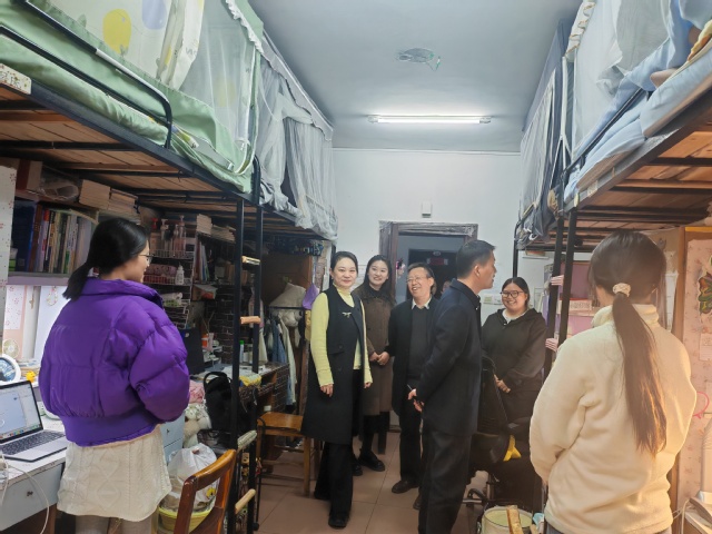 刘永存处长和刘晶晶副院长一起参观了教科院“一站式”学生社区,了解了教科院“一站式”学生社区的建设情况。随后领导老师们一起学生寝室与学生进行交流沟通,了解学生的学习和生活情况,尤其是日常生活中遇到的困难和困惑,并鼓励同学们合理安排时间,珍惜宝贵的在校时光,刻苦学习专业知识,不断提升综合能力,努力成长为对社会有贡献的高层次人才。同时,对于禁烟、用电安全、防火防盗等内容向学生提出了相关的意见与建议,领导老师们一再叮嘱同学们要增强安全防范意识,养成良好的学习、生活及文明习惯,展现当代研究生应有的蓬勃朝气与良好形象。