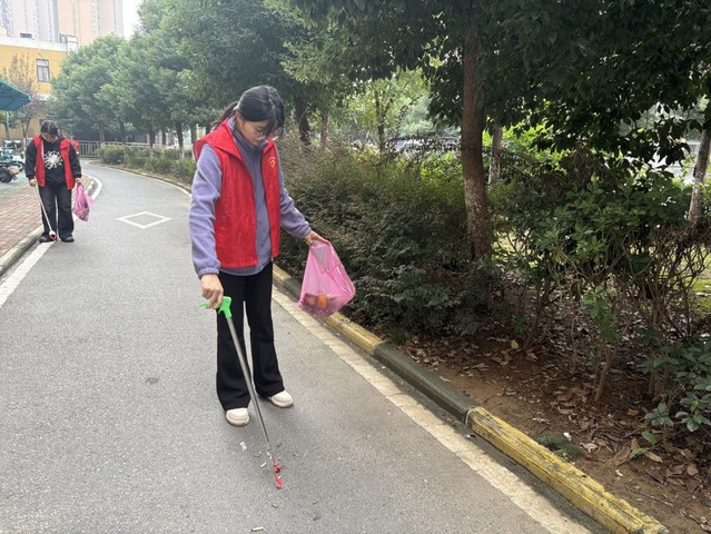 志愿者们按照负责人划分的区域开展清扫。他们手持垃圾夹,认真捡拾路面和绿化带中的烟头、塑料碎屑等垃圾,尤其对卫生死角和边角地带进行细致清理。志愿者们一次次的弯腰捡拾,不仅美化了社区环境,也展现出他们对服务社区、爱护环境的责任和担当。