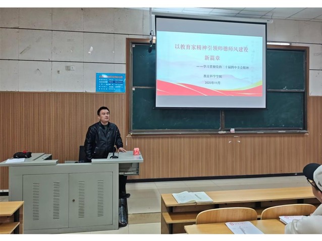 (通讯员 郭振雨)12月4日12时,教育科学学院(以下简称“教科院”)于阶梯教室3顺利举行2025“追光计划”学生干部素质能力培训班第六讲,本次培训由学校青年讲师团成员、教科院分团委副书记唐志强老师和24级教育学1班乐成雅担任主讲人,培训主题为《以教育家精神引领师德师风建设新篇章——学习贯彻党的二十届四中全会精神》。学生会、分团委、青年志愿者协会学生干部共同参与。