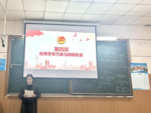 随后,优秀学员代表马晓艳发言。她谈到,团课学习让她深刻认识到青年与国家发展的紧密联系,未来将牢记“学思用贯通、知信行统一”的要求,在专业学习中锤炼本领,在服务社会中践行责任。团课结业并非终点,而是践行初心的新起点,在未来要将所学所悟转化为行动,以青年之姿担时代之责,用实干书写青春篇章,以青春之力呼应时代号召。