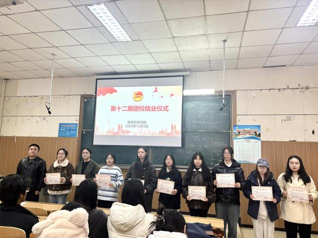 (通讯员 彭薇)为总结团校学习成果、表彰优秀学子,12月5日12时10分,教育科学学院(以下简称“教科院”)于阶梯教室2举行第十二期团校结业仪式。教科院党委书记乐三明、分团委副书记唐志强,第十二期全体团校学员参与此次活动。25级小学教育2班沈俊霖担任主持。
