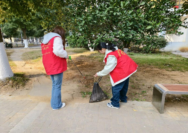 随后,志愿者深入湖口社区,开展社区环境美化志愿服务。活动中,志愿者们分工协作清理社区道路、公共活动区域及绿化带内的垃圾杂物,对不易清理的卫生死角进行重点整治。在活动过程中,志愿者们始终保持文明有礼的形象,干净整洁的社区环境赢得了居民们的纷纷点赞,进一步拉近了校社距离,为共建美好社区注入了青春力量。