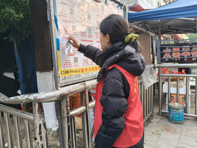 负责墙面清理的志愿者们发扬不怕脏、不怕累的精神,对广告栏上的顽固小广告进行清除,并使用工具对残留痕迹进行细致处理。大家耐心操作,力求让公共墙面恢复整洁原貌。