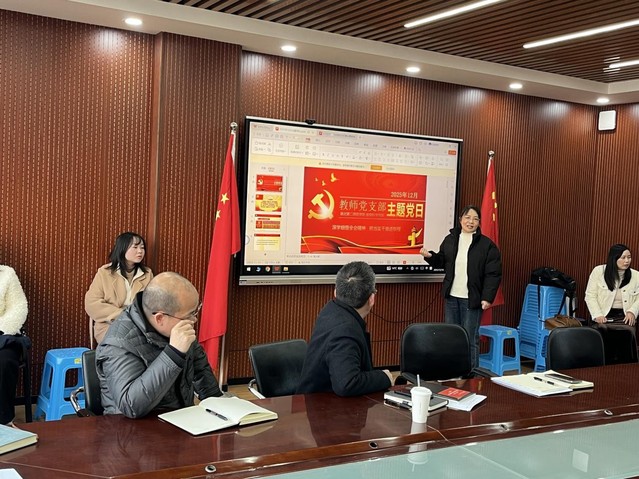 12月18日下午3:00,教育科学学院(下简称“教科院”)教师第一、第二党支部在院会议室召开12月主题党日活动。此次活动的主题为“深学细悟全会精神,担当实干奋进新程”。会议由教师第二党支部书记孙利主持,教科院第一、第二党支部全体党员参加。