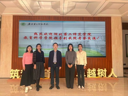 (通讯员 杨鑫)为扎实推进学前教育国家一流专业建设,提升人才培养质量,20251211日,教育科学学院学前教育系主任朱会从、中外合作办学项目主管程丽副教授一行前往广东第二师范学院教育学院进行考察交流。
