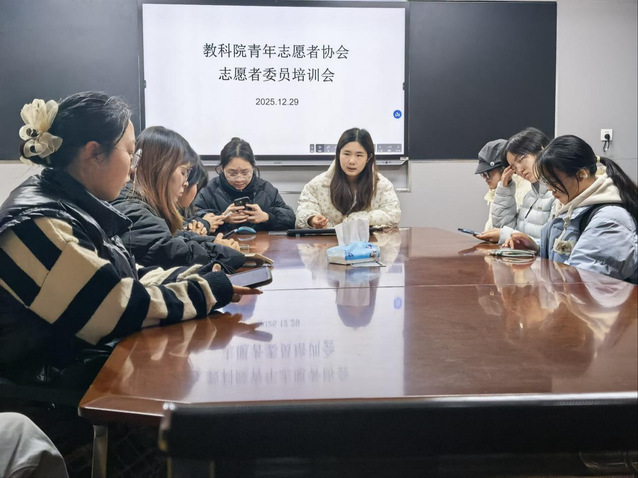 (通讯员郭振雨)为规范志愿工作管理流程,提升志愿者委员的业务能力与服务水平,12月29日18时,教育科学学院(以下简称“教科院”)青年志愿者协会于5号教学楼103会议室开展24、25级志愿者委员培训会,24、25级各班级志愿委员及志协办公室干事参与本次培训会,本次培训会由志协办公室部长李彤担任主讲人。