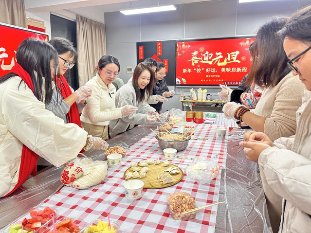 (通讯员 周前枝)为丰富师生课余生活,增强校园凝聚力,营造温馨祥和的元旦节日氛围,2025年12月31日下午16时至21时,教育科学学院(以下简称“教科院”)青年志愿者协会在五号教学楼103成功举办“新年‘饺’好运,美味启新程”元旦联欢活动。教育科学学院领导班子全体成员、辅导员以及学生代表参加。