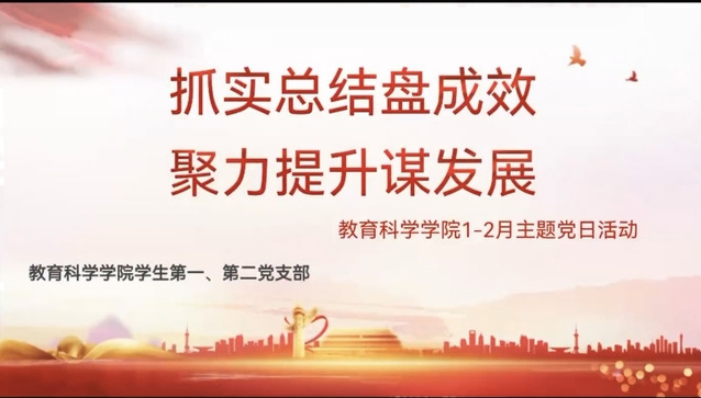 (通讯员 康佳琪)教育科学学院(以下简称“教科院”)学生第一、第二党支部于2月3日13时30分召开在线会议,开展1-2月主题党日学习活动。此次活动的主题为“抓实总结盘成效,聚力提升谋发展”。党支部全体党员参加,23级学前教育1班贺兰珺担任主持。